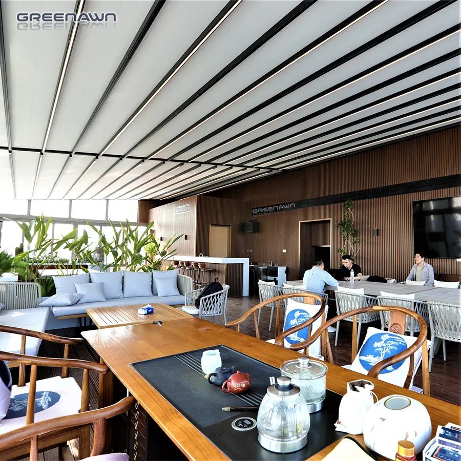 ALV Outdoor Blackout Windproof Automatic Retractable Pergola PVC
