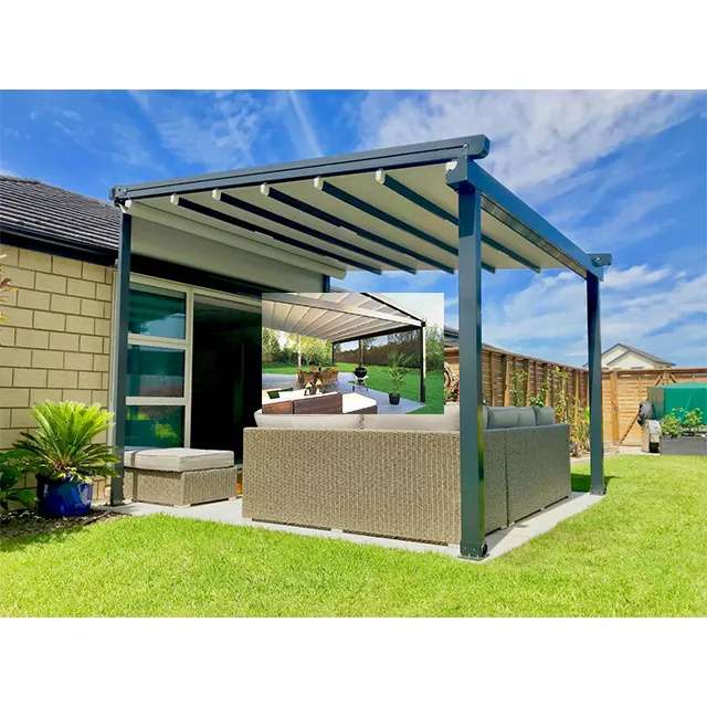 SUNC Outdoor Blackout Windproof Automatic Retractable Pergola PVC