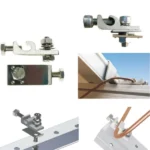 When the fastening screw is tightened, the integrated grounding spike penetrates the anodized aluminum surface or conductive metal structure, forming a reliable metal-to-metal electrical bond. This ensures efficient dissipation of static electricity and fault current from the solar array to the grounding copper conductor.