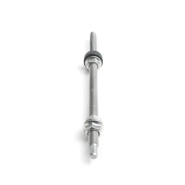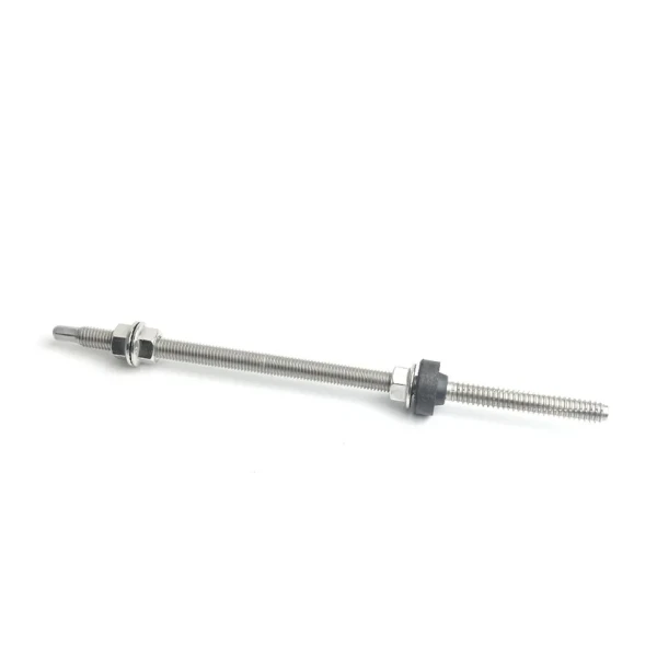 Made from SUS304 stainless steel, these bolts are designed for pre-drilled steel purlins. Each set includes two nuts, a waterproof EPDM pad, a gasket, and an adjustable clip for secure fastening.