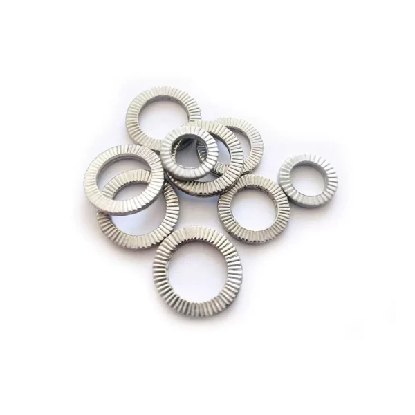 Serrated lock washers provide superior anti-loosening performance even without high initial preload. Radial serrations grip surfaces, ideal for systems with vibration or movement. Available in stainless steel, alloy steel, and brass with protective coatings.